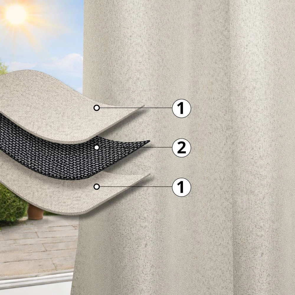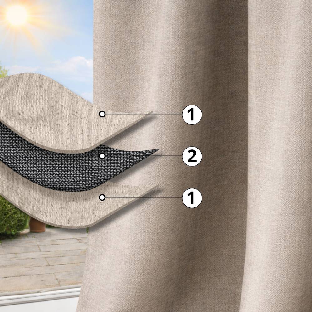 1. Strat decorativ: țesătură cu aspect de in, identică pe ambele părți.