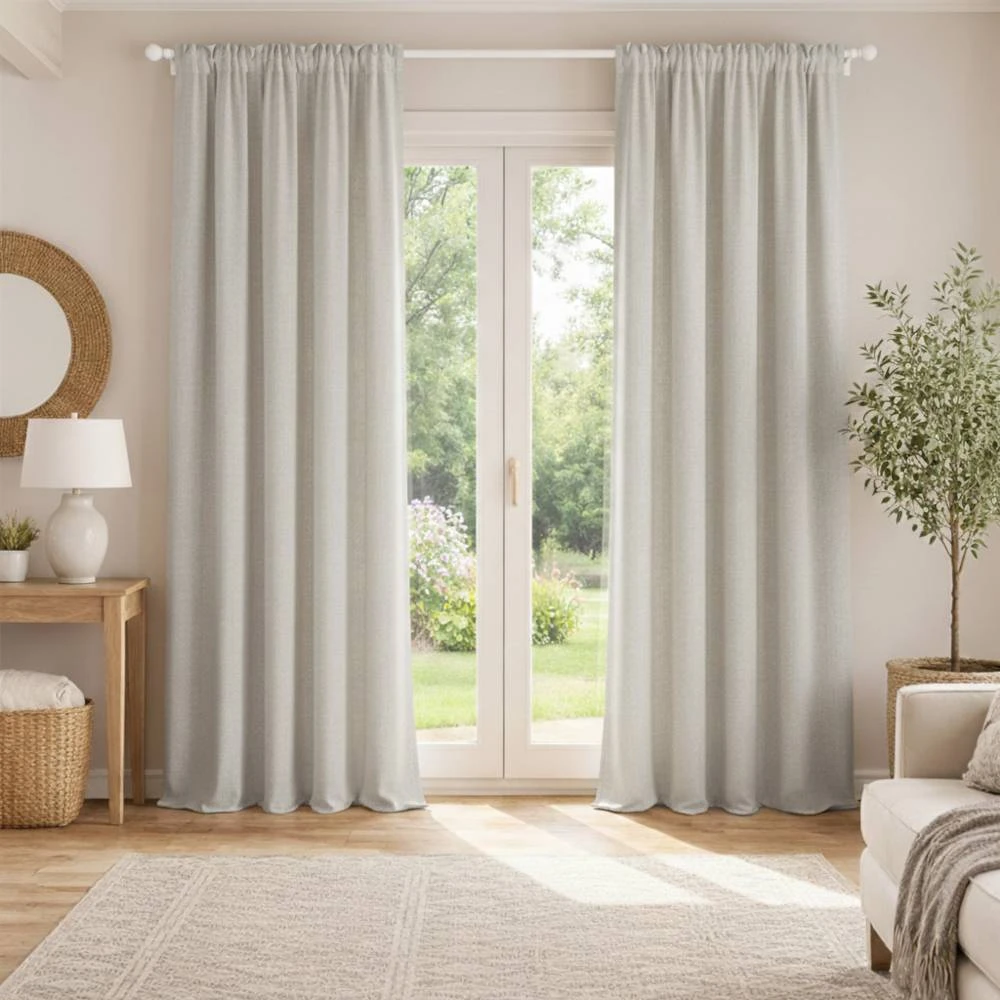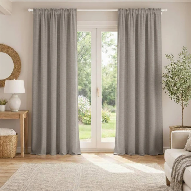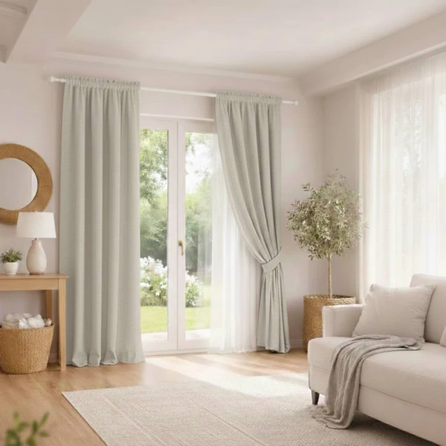 • Draperiile cu țesătură tip pânză se remarcă prin simplitate și minimalism, adaptându-se ușor la diferite stiluri de amenajare și evidențiind caracterul natural al interiorului.