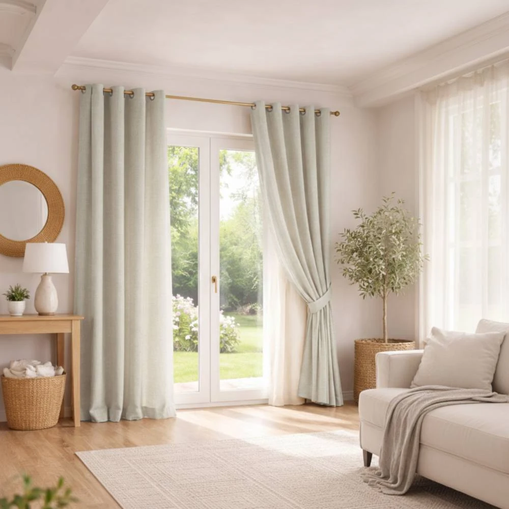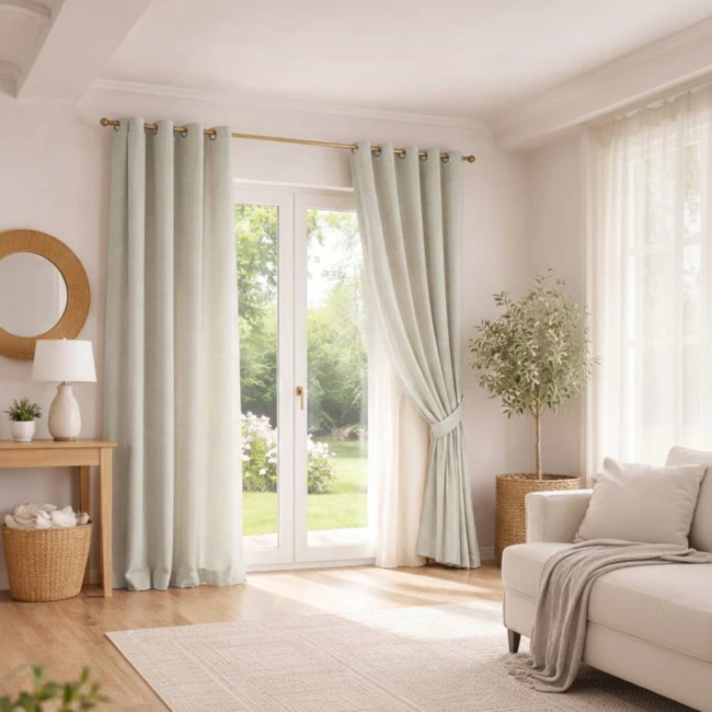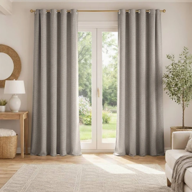 • Draperiile cu țesătură tip pânză se remarcă prin simplitate și minimalism, adaptându-se ușor la diferite stiluri de amenajare și evidențiind caracterul natural al interiorului.