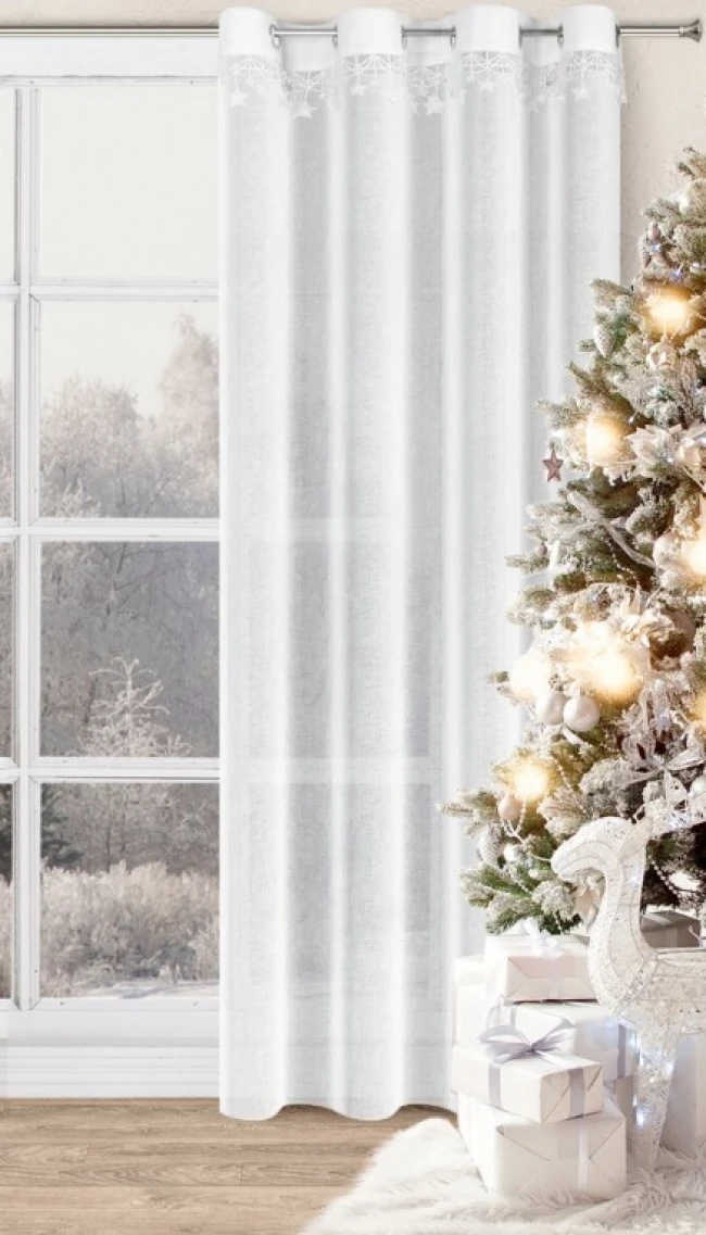 - Perdea cu imprimeu elegant de Crăciun, care atrage privirea și creează o atmosferă deosebită