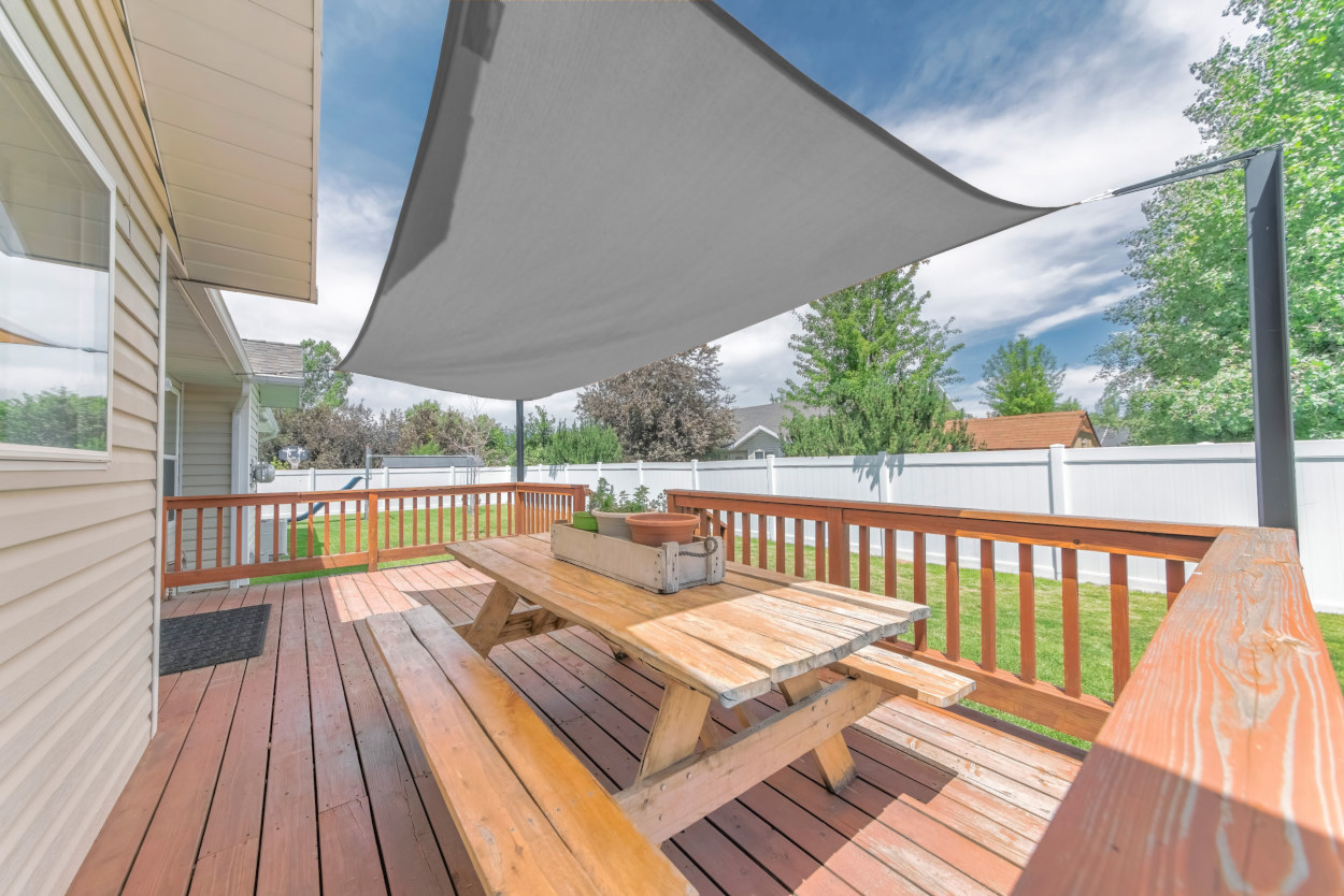 - Materiale de înaltă calitate – Fabricat din țesătură durabilă, impermeabilă, de poliester de mare greutate, oferă o protecție excelentă împotriva soarelui (BLOC UV: Blochează până la 90% din radiațiile UV nocive) și vântului. Materialul este rezistent la decolorare și ușor de curățat